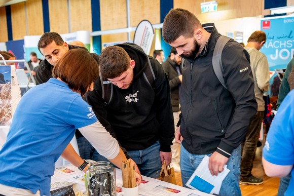"Ich finde die Jobmesse wirklich toll! Ich konnte mir einen sehr guten Überblick verschaffen und weiß jetzt, welche beruflichen Möglichkeiten ich nach meiner Qualifizierung habe", erzählt uns ein SZF-Teilnehmer.