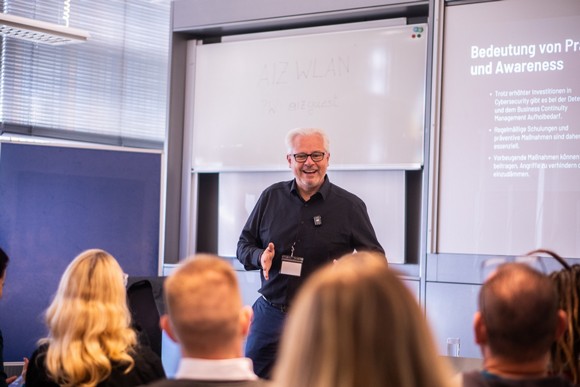 Den begeisterten Zuhöhrer:innen wurde ein Cyber Angriff vorgeführt und erklärt, welche Maßnahmen Unternehmen ergreifen können, um die Sicherheit Ihrer IT-Systeme zu erhöhen.
