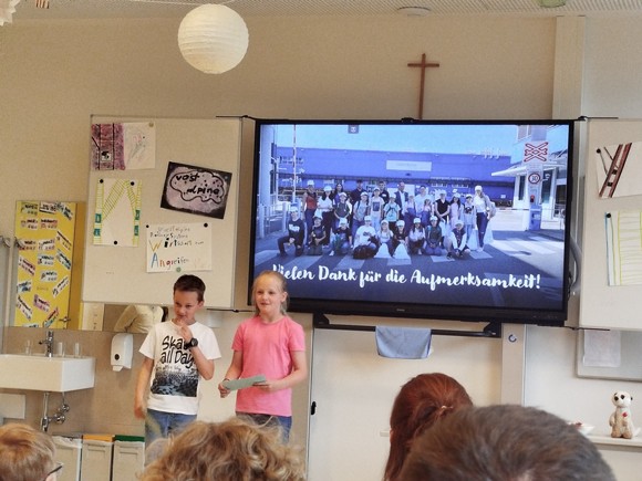 In Interviews wurden die Kinder der 4.Klasse zu „kleinen“ Reporterinnen und Reportern, wobei man die Freunde und Neugierde beider Seiten sichtlich spüren konnte. Im Anschluss folgten ein gemeinsames Herstellen von Schraubenmännchen, sowie das Gruppenfoto und Überreichen toller Geschenke. Für die Klasse war es ein außergewöhnlicher Tag, an den sie sich noch lange erinnern werden.