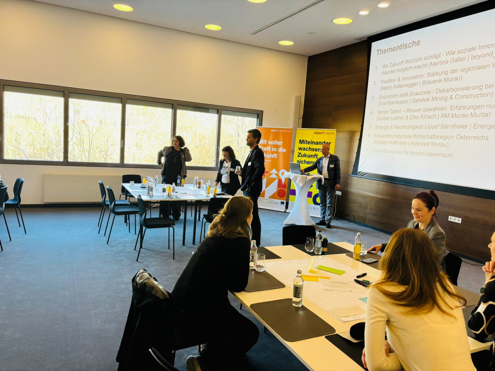 Spannende Einblicke aus der Praxis gaben Martina Galler (beyond_Mosauf), Martin Kaltenegger (Brauerei Murau eGen), Eva Klambauer (Sandvik Mining & Construction G.m.b.H.) sowie Günter Leitner und Elke Klösch (Regionalmanagement Murau Murtal). Sie zeigten auf, wie nachhaltige Ansätze und innovative Ideen in unterschiedlichen Branchen erfolgreich umgesetzt werden können.
