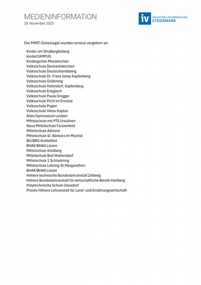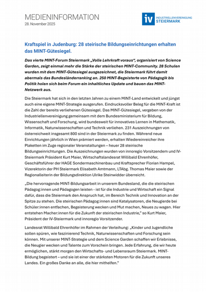 Pressetext Industriellenvereinigung Steiermark | 28. November 2025