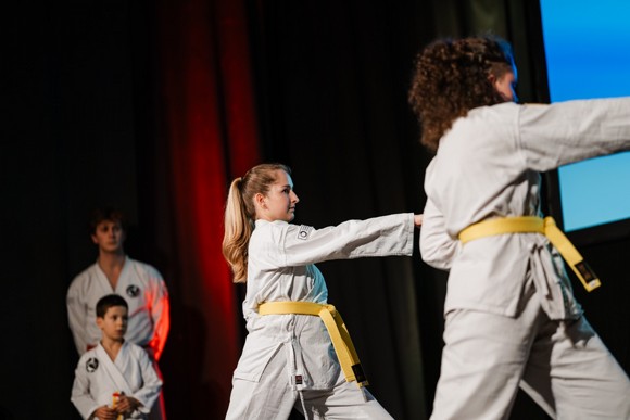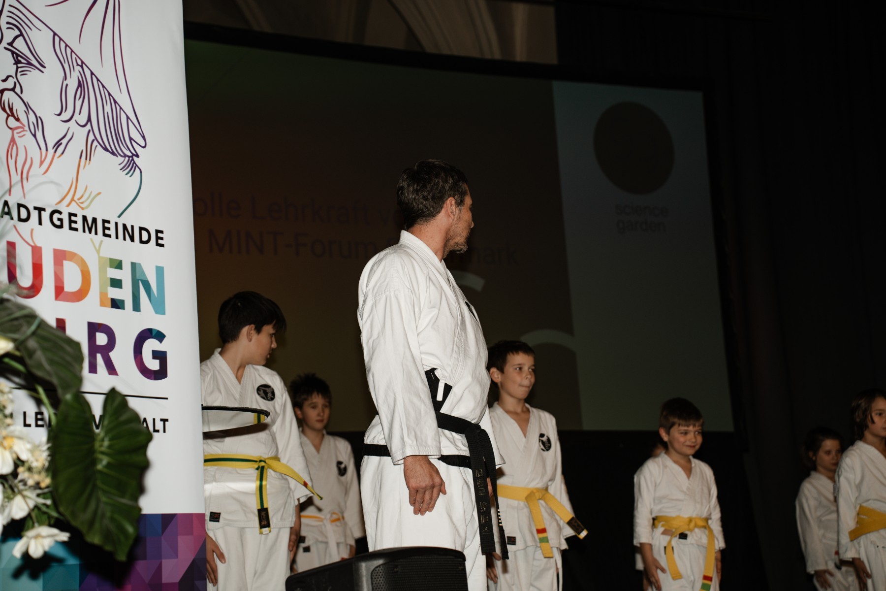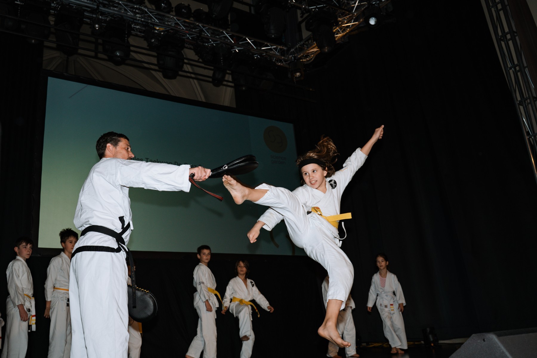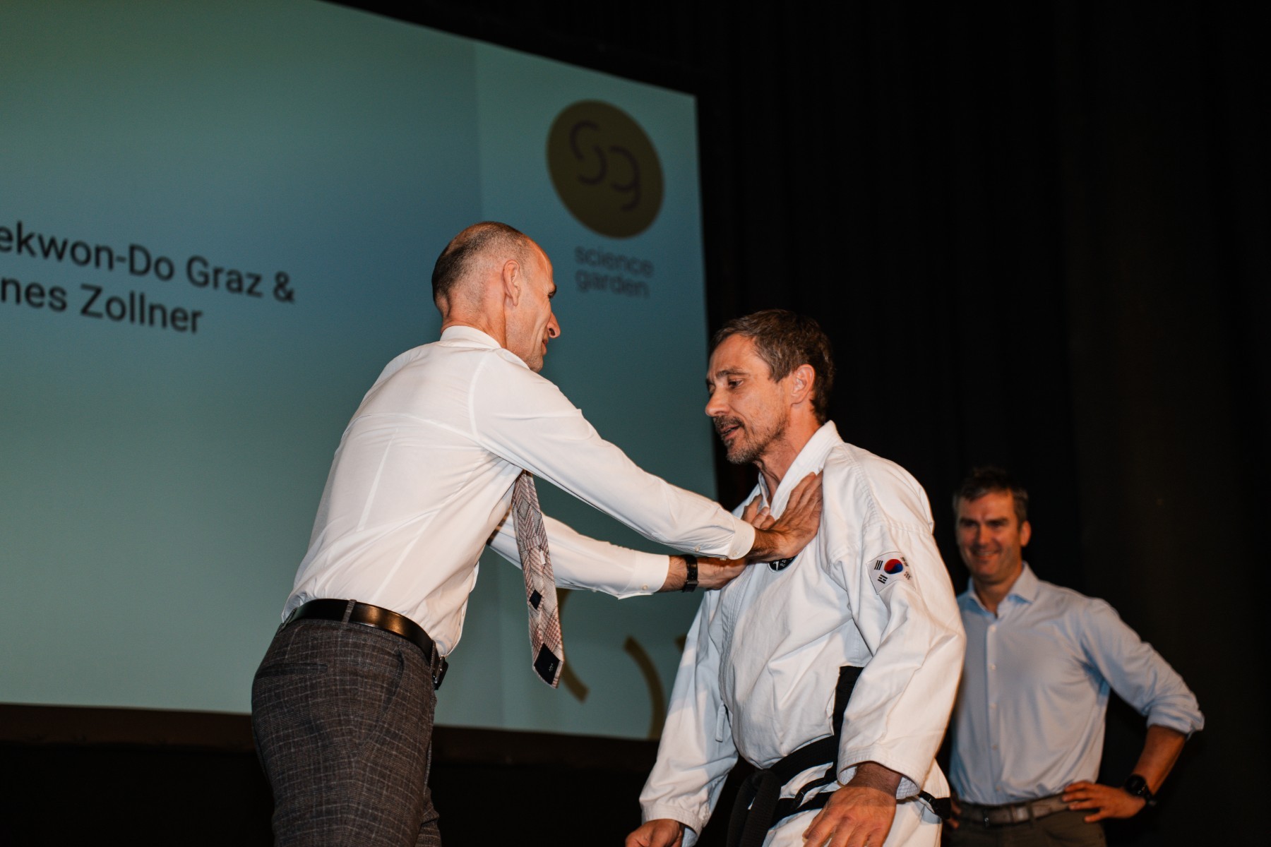Nicht nur Kreativität und Geist standen im Mittelpunkt – auch körperliches Können und Beweglichkeit wurden eindrucksvoll demonstriert: Taekwondo-Großmeister Hannes Zollner zeigte gemeinsam mit 15 jungen Talenten des Vereins ‚Traditionelles Taekwondo Graz‘ eindrucksvoll, wie Kraft richtig eingesetzt wird. Die Kinder beeindruckten das Publikum mit beeindruckenden Techniken, Sprüngen und präzisen Schlägen.