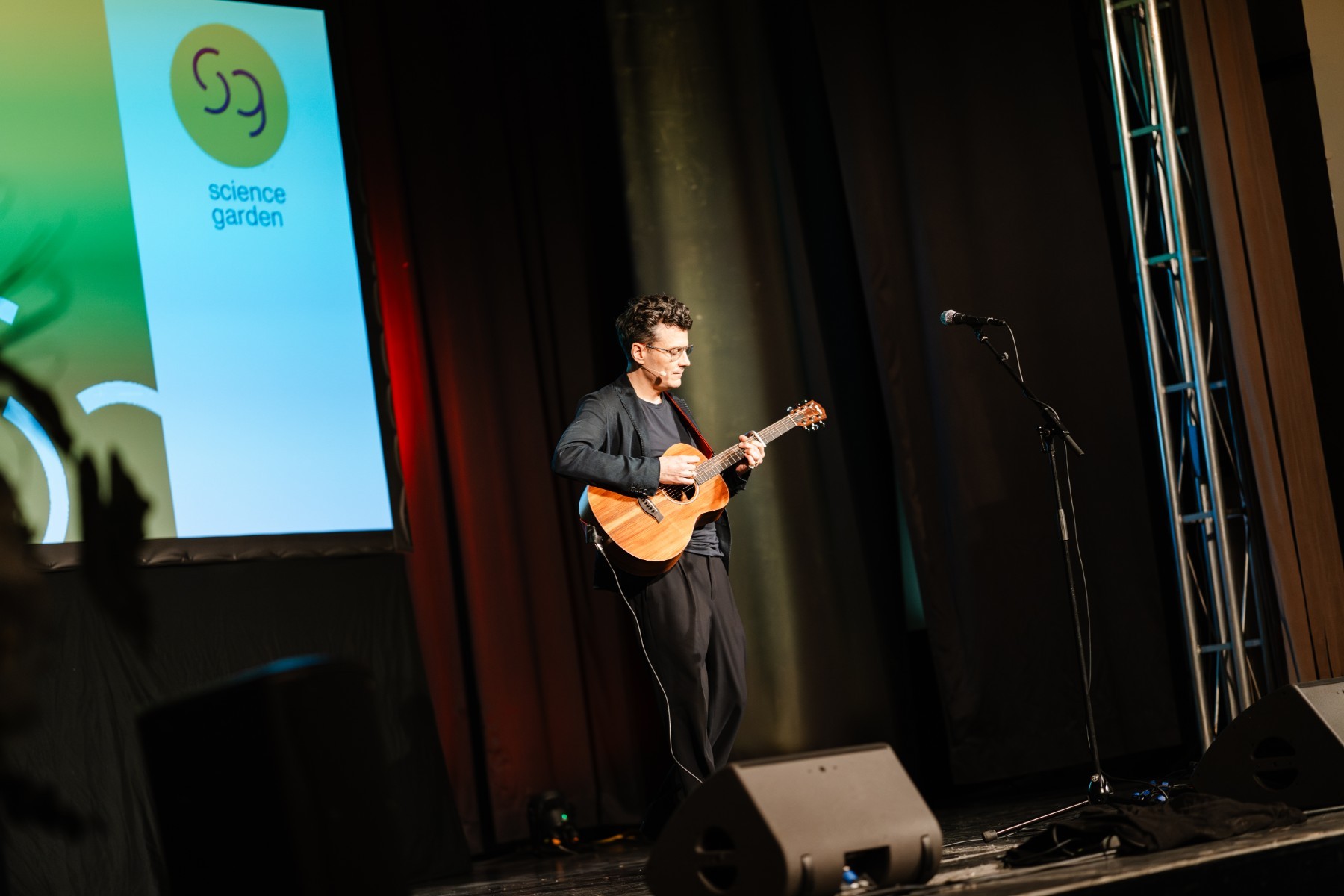 Für ein abwechslungsreiches Programm sorgte Schauspieler und Kabarettist Manuel Rubey, der mit Texten und musikalischen Elementen über Erwachsenwerden, Kindheit und Talententwicklung reflektierte. „Ich glaube, dass es nicht der Ehrgeiz ist, den man als Lehrer:in wecken muss. Es geht darum, mehr zu entfachen, Neugierde zu nähren und Bestreben zu wecken. Aus Ehrgeiz Mathematik zu studieren ist ein anderer Zugang als dieses Fach zu wählen, weil man es liebt. Wenn die Talente von Kindern dort landen, wo Liebe und Flow ist, sind sie auf einem erfüllenden Weg.“