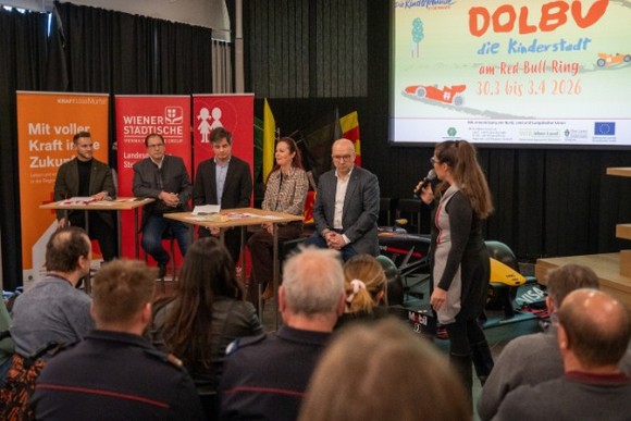 Auch im Jahr 2026 findet die DOLBU Kinderstadt in der Osterwoche am Red Bull Ring in Spielberg statt. Am 23. Februar 2026 gab es dazu die Pressekonferenz mit allen Mitwirkenden.