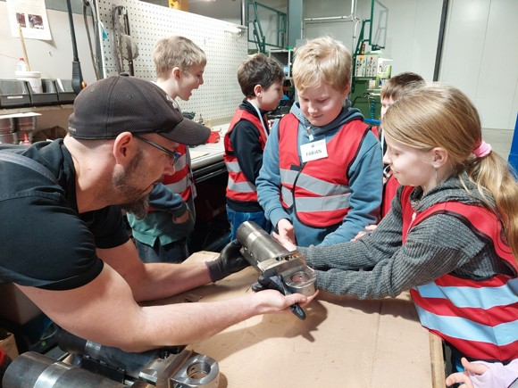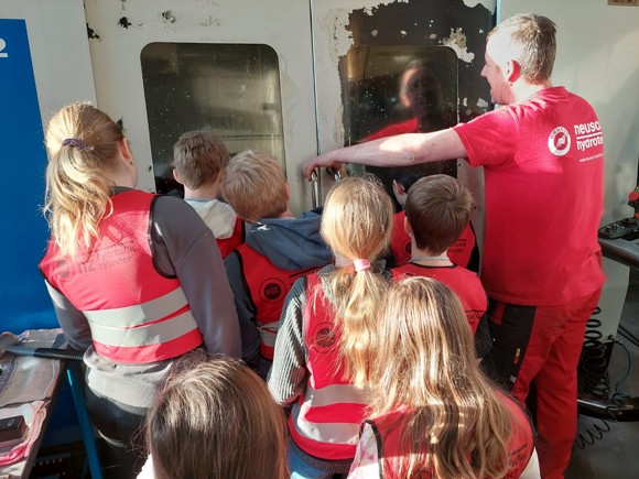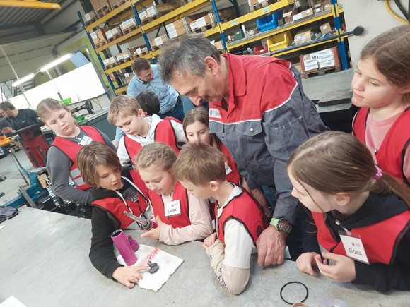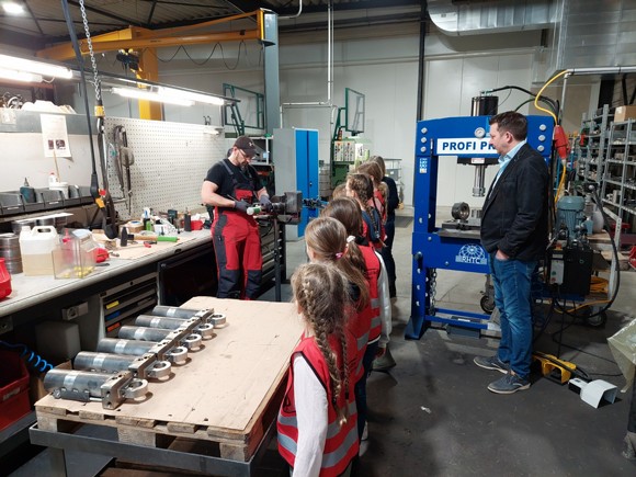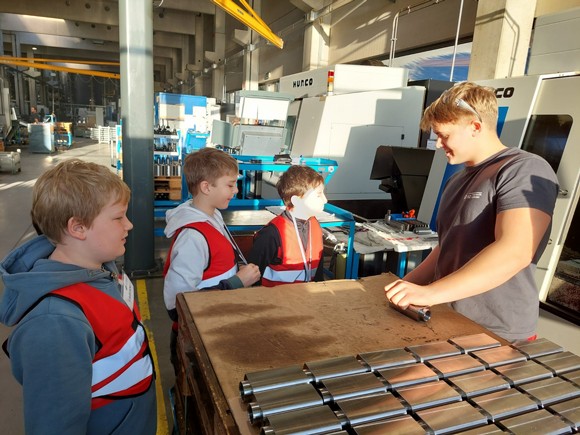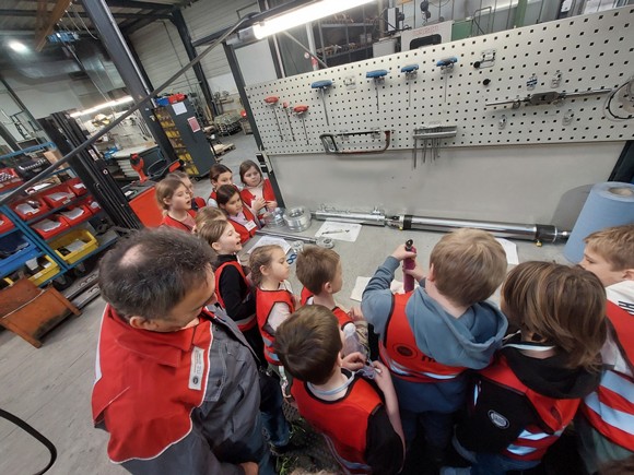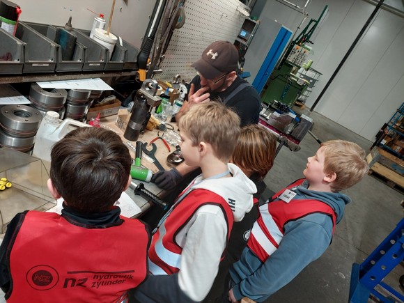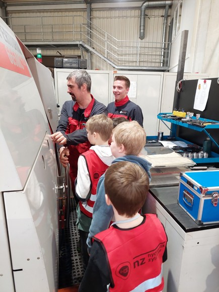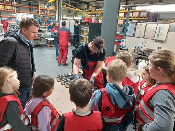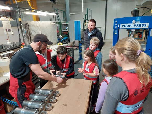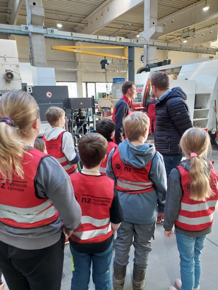 Die Kinder der 3. und 4. Klasse der Volksschule Kleinlobming besuchten unseren KRAFT-Partnerbetrieb NZ Hydraulikzylinder GmbH und durften nach einer kurzen Firmenvorstellung einen geführten Einblick in die Produktionshallen werfen.