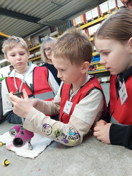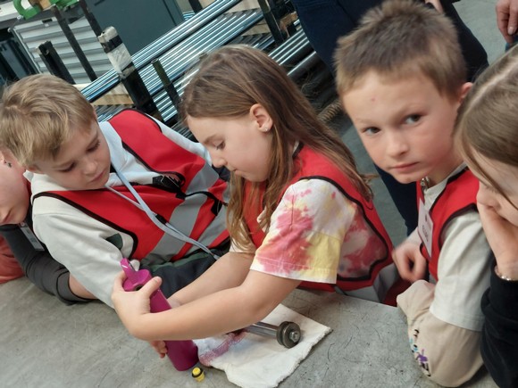 Im Anschluss durften die Kinder selbst einen Maschinenarm bedienen und ihr Geschick beim Zusammensetzen unterschiedlicher Teile vorzeigen.