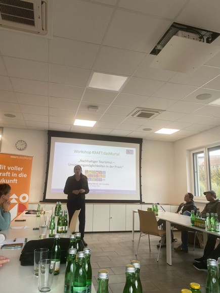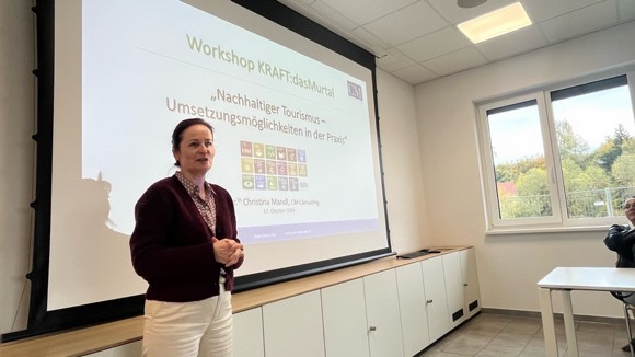 Bei diesem Workshop wurden die zahlreichen Teilnehmer:innen aus den Tourismusbetrieben, Tourismusverbänden Murau und Murtal sowie deren Entscheidungsträger:innen von Frau Dr. Christina Mandl sensibilisiert, welche Möglichkeiten und Zertifizierungen es im Bereich "nachhaltiger Tourismus" gibt. In diesem Zusammenhang wurden von Herrn DI Josef Bärnthaler entsprechende Fördermöglichkeiten vorgestellt.