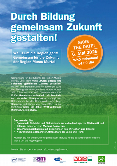 Nachstehend dürfen wir Sie über die Einladung von unseren Kooperationspartner:innen AMS Steiermark, WK Steiermark, ZAM Murau Murtal, SZF Fohnsdorf und WIFI Obersteiermark informieren: