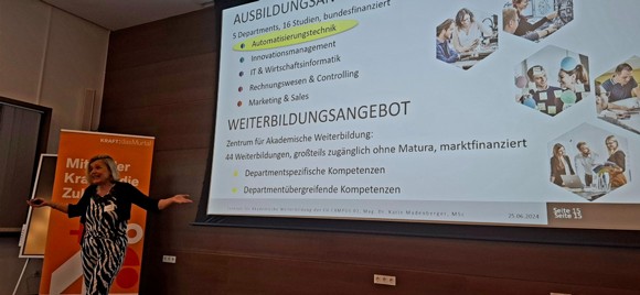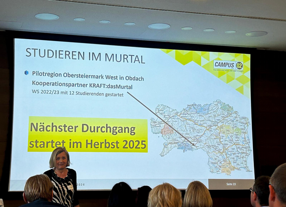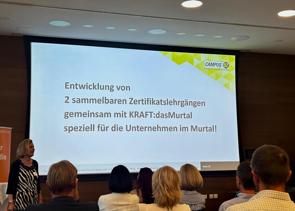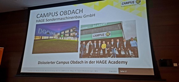 Im Mittelpunkt stand hierbei die Ausweitung der bestehenden Bildungspartnerschaft zwischen FH CAMPUS02 und KRAFT:dasMurtal, denn bereits im Jänner 2025 starten erstmals zwei hochschulische Zertifikatslehrgänge in Obdach: „Digitale Innovation in der Produktion“ sowie „Digitale Innovation im Vertrieb".